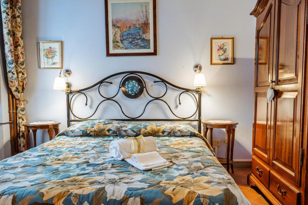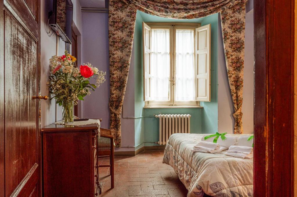 Die Zimmer im Antica Casa dei Rassicurati sind individuell eingerichtet und verteilen sich auf zwei Etagen. Jedes Zimmer besitzt einen eigenen, charmanten Stil mit floralen Dekorationen. Die Betten sind schmiedeeisern und typisch toskanisch gestaltet. Alle Zimmer verfügen über ein eigenes Badezimmer mit modernen Annehmlichkeiten. Terrakottaböden und sichtbare Holzbalkendecken sorgen für authentisches Landhausflair. Die Einrichtung ist liebevoll und detailreich, mit warmen Farben und gemütlicher Atmosphäre. Jedes Zimmer ist mit TV ausgestattet, WLAN ist im gesamten Haus verfügbar. Heizung sorgt für angenehme Temperaturen im Winter. Teilweise sind Deckenventilatoren oder zusätzliche Lüftungsmöglichkeiten vorhanden. Kleine bis mittlere Haustiere sind in den Zimmern willkommen. Einige Zimmer bieten Ausblick auf den Hof oder die umliegenden Weinberge. Die Zimmer sind ruhig gelegen, ideal für erholsamen Schlaf. Die Reinigung erfolgt täglich auf Wunsch der Gäste. Bettwäsche und Handtücher werden gestellt. Die Zimmer verbinden Komfort, Stil und authentisches toskanisches Ambiente. Einige Zimmer sind mit einer Deckenventilation ausgestattet, andere mit Klimaanlage.