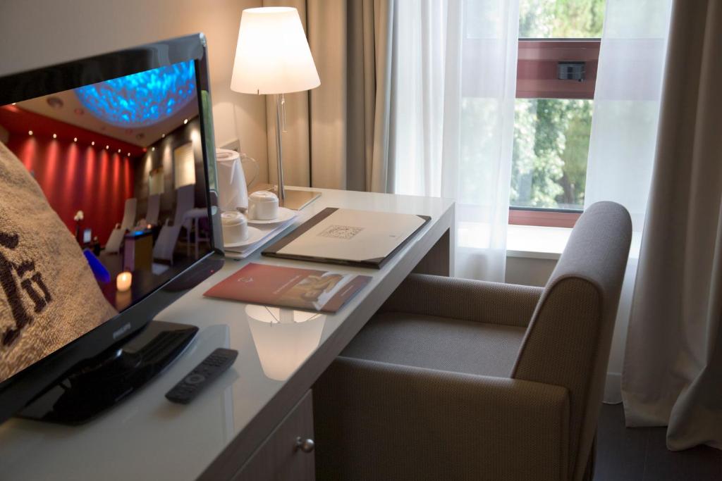 Das Hotel Federico II ist ein elegantes 4-Sterne-Hotel in Jesi in der Region Marken, unweit des historischen Stadtzentrums gelegen und von einem weitläufigen privaten Park umgeben. Die Anlage verbindet modernen Komfort mit einer ruhigen und gepflegten Atmosphäre und eignet sich sowohl für Urlaubs- als auch für Geschäftsreisen. Den Gästen stehen großzügige Gemeinschaftsbereiche, ein Wellness- und Spa-Zentrum mit Sauna, Dampfbad, Whirlpool und Ruhebereich zur Verfügung. Ein Fitnessraum sowie ein beheiztes Hallenschwimmbecken ergänzen das Angebot, während in den Sommermonaten ein Außenpool für Entspannung sorgt. Das hoteleigene Restaurant bietet regionale und internationale Spezialitäten in stilvollem Ambiente. Eine Bar, elegante Lounges und Außenbereiche laden zum Verweilen ein. Das Hotel verfügt über moderne Konferenz- und Veranstaltungsräume und ist ideal für Meetings, Kongresse und Events. Kostenfreies WLAN steht im gesamten Gebäude zur Verfügung. Parkmöglichkeiten sind vorhanden. Die strategische Lage ermöglicht eine gute Anbindung an Autobahn, Flughafen und Adriaküste. Das Hotel bietet einen hohen Servicestandard und eine professionelle Betreuung. Die Umgebung eignet sich hervorragend für Ausflüge in die Marken. Komfort, Funktionalität und Erholung stehen hier im Mittelpunkt. Das Hotel ist ganzjährig geöffnet. Gäste schätzen besonders die Kombination aus Ruhe und Servicequalität.