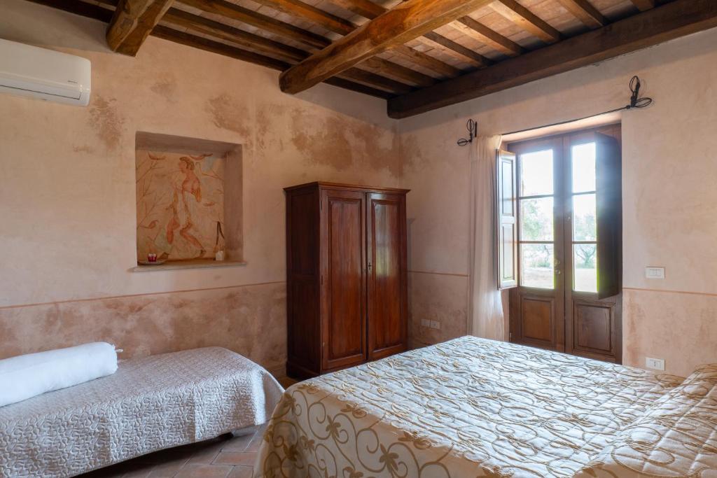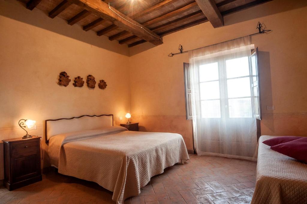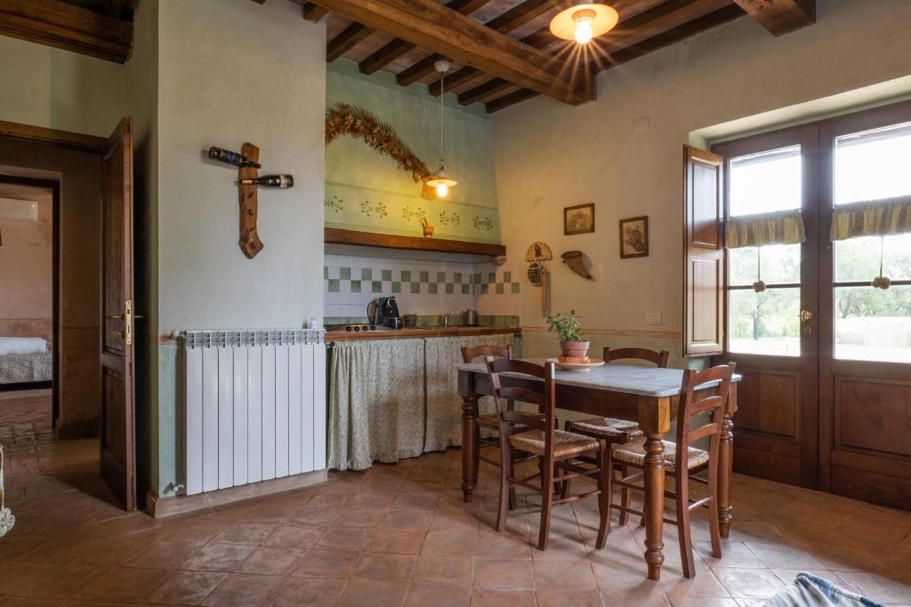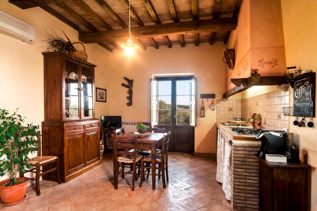 Die Appartements im Agriturismo Tenuta Roccaccia sind im rustikalen toskanischen Stil eingerichtet und bieten eine gemütliche Atmosphäre. Naturmaterialien, warme Farben und traditionelle Details prägen die Einrichtung. Jeder Appartement verfügt über einen Wohnbereich mit Küche oder Kochnische und ist ideal für Selbstversorger. Separate Schlafzimmer bieten Komfort und Privatsphäre. Große Fenster sorgen für viel Tageslicht und bieten einen schönen Blick auf die umliegende Landschaft. Einige Appartements verfügen über eine Terrasse oder einen privaten Außenbereich. Zur Ausstattung gehören außerdem ein eigenes Bad und praktische Möbel. Die ruhige Lage garantiert Entspannung und Erholung. Die Unterkünfte eignen sich ideal für Paare, Familien oder längere Aufenthalte. Sie verbinden ländlichen Charme mit Komfort und der typischen Atmosphäre der Toskana.