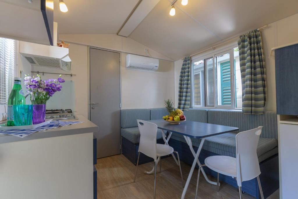 Die Unterkünfte im Camping Bosco Verde bieten für jeden Geschmack das Richtige. Gäste können zwischen modernen Mobilheimen, komfortablen Bungalows oder gemütlichen Chalets wählen. Alle Einheiten sind funktional eingerichtet und verfügen über Küche, Badezimmer, Klimaanlage und eine private Veranda. Die Mobilheime sind ideal für Familien und bieten Platz für bis zu sechs Personen. Die Bungalows sind von Pinien umgeben und schaffen eine ruhige, naturnahe Atmosphäre. Bettwäsche und Handtücher können auf Wunsch gemietet werden. Dank der guten Isolierung sind die Unterkünfte sowohl im Sommer als auch im Frühling angenehm bewohnbar. Im Außenbereich stehen Tische und Stühle für Mahlzeiten im Freien bereit. Sauberkeit und Pflege werden großgeschrieben, und alle Unterkünfte sind von gepflegten Grünflächen umgeben. So entsteht ein harmonisches Gleichgewicht zwischen Natur und Komfort.