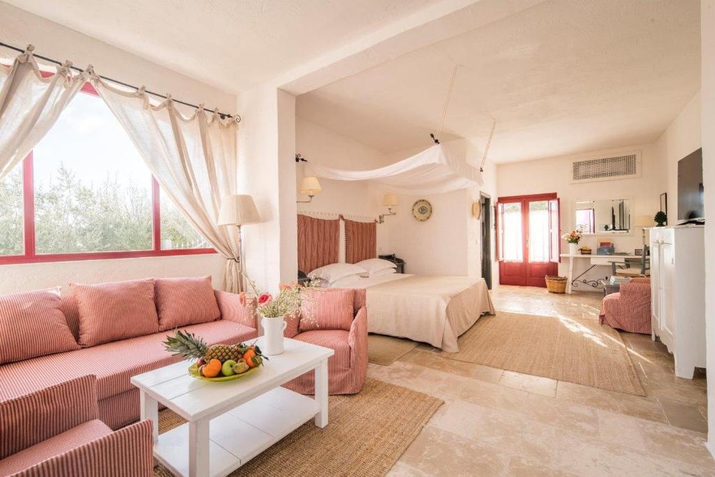 Die Zimmer und Suiten der Masseria Torre Coccaro sind elegant, atmosphärisch und im typischen Stil der apulischen Masserie gestaltet. Helle Naturmaterialien, Steinböden und liebevolle Details schaffen eine warme, authentische Atmosphäre. Viele Unterkünfte befinden sich in ehemaligen Bauernhäusern oder alten Stallungen und bewahren ihren historischen Charakter. Einige Zimmer bieten romantische Gewölbedecken, Kamine oder traditionelle Nischen. Die Suiten verfügen oft über großzügige Wohnbereiche und besondere Elemente wie Whirlpool-Badewannen oder private Gärten. Ausgewählte Kategorien besitzen eine eigene Terrasse mit Blick auf die Olivenhaine oder die ruhige Landschaft. Moderne Komforts wie hochwertige Betten, Klimaanlage und luxuriöse Badezimmer sind überall vorhanden. Die Einrichtung verbindet mediterrane Einfachheit mit stilvoller Eleganz. Einige exklusive Suiten bieten zudem private Pools oder kleine Innenhöfe. Die ruhige Lage der Unterkünfte sorgt für maximale Erholung. Jede Kategorie ist so gestaltet, dass sie sowohl Paaren als auch Familien ein hohes Maß an Komfort und Privatsphäre bietet.