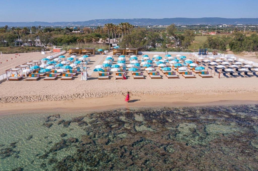Die Masseria Torre Coccaro in Fasano ist ein exklusives Anwesen aus dem 16. Jahrhundert, eingebettet in eine weitläufige Landschaft aus Olivenhainen und mediterraner Vegetation. Die historische Architektur wurde mit großem Respekt restauriert und verbindet traditionellen Charme mit modernem Luxus. Die eleganten Zimmer und Suiten sind individuell gestaltet und bieten eine warme, raffinierte Atmosphäre. Einige Unterkünfte verfügen über private Gärten, Terrassen oder Pools. Die Masseria bietet einen großen Außenpool, ruhige Innenhöfe und zahlreiche Rückzugsorte zum Entspannen. Das hauseigene Spa befindet sich in alten Höhlen und bietet ganzheitliche Anwendungen. Gastronomisch überzeugt die Masseria mit Restaurants, die regionale Zutaten und traditionelle apulische Küche kreativ interpretieren. Gäste können an Kochkursen, Weinproben oder Olivenölverkostungen teilnehmen. Der private Strandclub mit Restaurant und Lounge-Bereich ist bequem erreichbar und bietet höchsten Komfort am Meer. Zudem stehen ein Golfplatz, Reitmöglichkeiten und verschiedene Outdoor-Aktivitäten zur Verfügung. Die Masseria Torre Coccaro ist ein idealer Ort für Gäste, die Natur, Eleganz und authentische apulische Atmosphäre suchen.