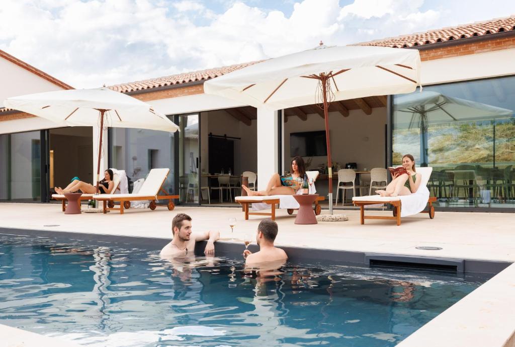 Die Zimmer im Agriturismo Castel Bricon sind hell, geräumig und geschmackvoll eingerichtet. Sie verbinden modernen Komfort mit einem klaren, eleganten Stil. Alle Zimmer verfügen über ein eigenes Bad mit Dusche und hochwertigen Pflegeprodukten. Klimaanlage sorgt auch im Sommer für angenehme Temperaturen. Ein Flachbildfernseher und kostenfreies WLAN gehören zur Standardausstattung. Die Betten sind bequem und garantieren erholsamen Schlaf. Große Fenster lassen viel Tageslicht herein. Einige Zimmer bieten Blick auf den Garten oder die umliegende Hügellandschaft. Die Räume sind schallisoliert und ruhig gelegen. Nichtraucherzimmer stehen zur Verfügung. Die Einrichtung ist funktional und zugleich gemütlich. Sauberkeit wird besonders geschätzt. Die Zimmer bieten ausreichend Platz für Paare und Familien. Warme Farben schaffen eine entspannte Atmosphäre. Insgesamt bieten die Zimmer Komfort, Ruhe und Wohlbefinden.