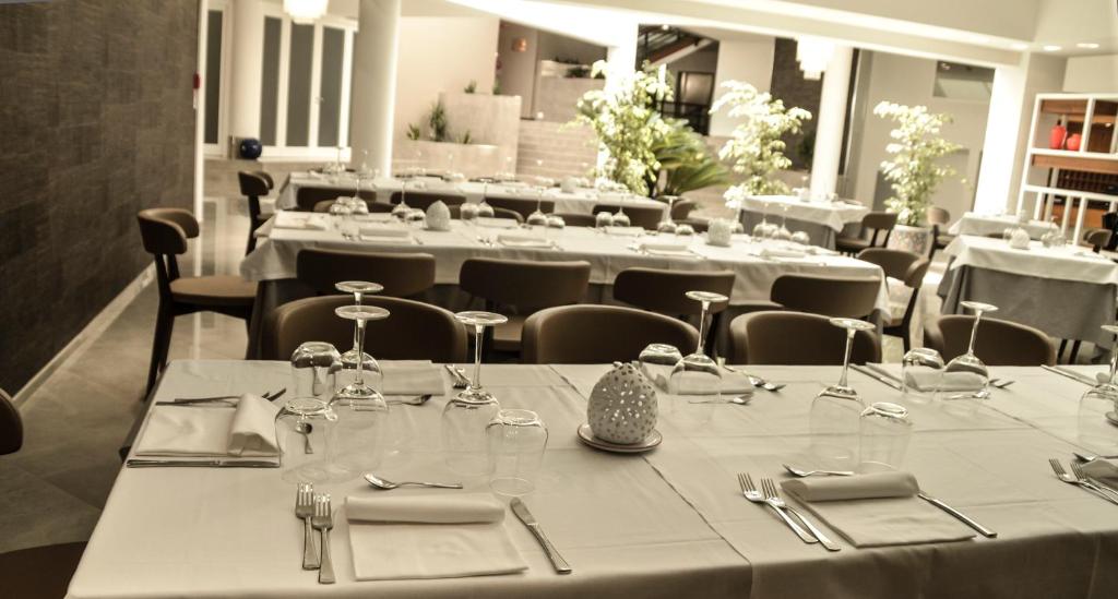 Das D’Aragona Lifestyle Hotel in Conversano liegt in einer ruhigen Gegend und ist von einer weitläufigen Gartenanlage umgeben. Die Struktur erstreckt sich über ein großes Gelände und vermittelt sofort ein Gefühl von Entspannung und Natur. Zwei große Außenpools, einer davon auch für Kinder geeignet, laden zum Sonnenbaden und zum Relaxen ein. Die eleganten Gemeinschaftsbereiche und die modernen Einrichtungen schaffen eine angenehme, gepflegte Atmosphäre. Das Hotel verfügt über stilvoll eingerichtete Zimmer, die hell, komfortabel und mit modernen Annehmlichkeiten ausgestattet sind. Viele Unterkünfte bieten einen Balkon mit Blick auf den Garten oder den Pool. Das hauseigene Restaurant serviert eine feine Auswahl an regionalen und internationalen Gerichten, während das reichhaltige Frühstücksbuffet den Tag geschmackvoll beginnen lässt. Für Momente der Erholung steht ein schöner Wellnessbereich mit Sauna, Erlebnisduschen und Ruhezonen zur Verfügung. Ein Fitnessraum ergänzt das Angebot für Gäste, die auch im Urlaub aktiv bleiben möchten. Familien profitieren von großzügigen Außenbereichen und Services für Kinder, während Geschäftsreisende moderne Konferenzräume nutzen können. Das freundliche Personal, die gepflegte Umgebung und die entspannte Atmosphäre machen das D’Aragona Lifestyle Hotel zu einer idealen Wahl für Urlauber, Paare, Familien und Geschäftsreisende, die Komfort und Wohlbefinden in Conversano suchen.