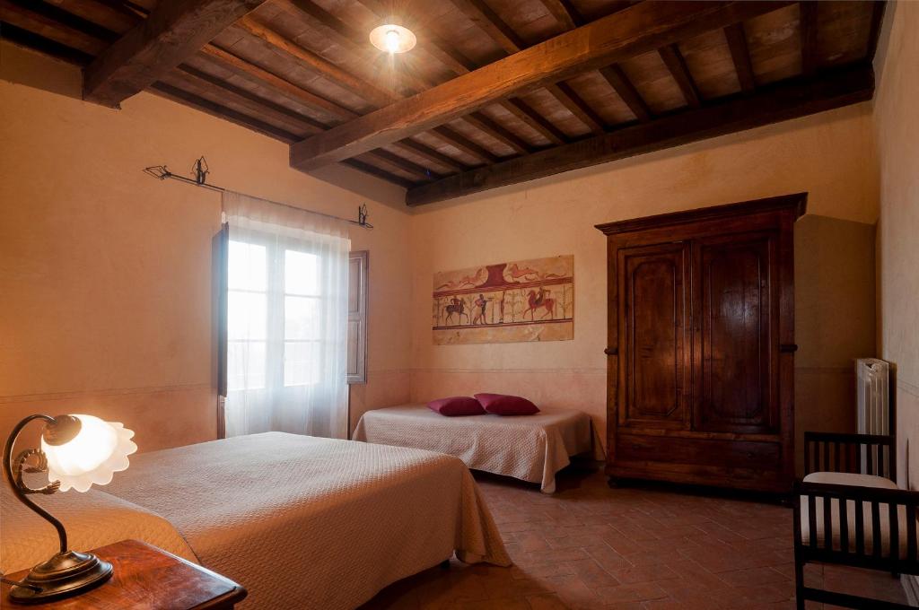 Die Appartements im Agriturismo Tenuta Roccaccia sind im rustikalen toskanischen Stil eingerichtet und bieten eine gemütliche Atmosphäre. Naturmaterialien, warme Farben und traditionelle Details prägen die Einrichtung. Jeder Appartement verfügt über einen Wohnbereich mit Küche oder Kochnische und ist ideal für Selbstversorger. Separate Schlafzimmer bieten Komfort und Privatsphäre. Große Fenster sorgen für viel Tageslicht und bieten einen schönen Blick auf die umliegende Landschaft. Einige Appartements verfügen über eine Terrasse oder einen privaten Außenbereich. Zur Ausstattung gehören außerdem ein eigenes Bad und praktische Möbel. Die ruhige Lage garantiert Entspannung und Erholung. Die Unterkünfte eignen sich ideal für Paare, Familien oder längere Aufenthalte. Sie verbinden ländlichen Charme mit Komfort und der typischen Atmosphäre der Toskana.