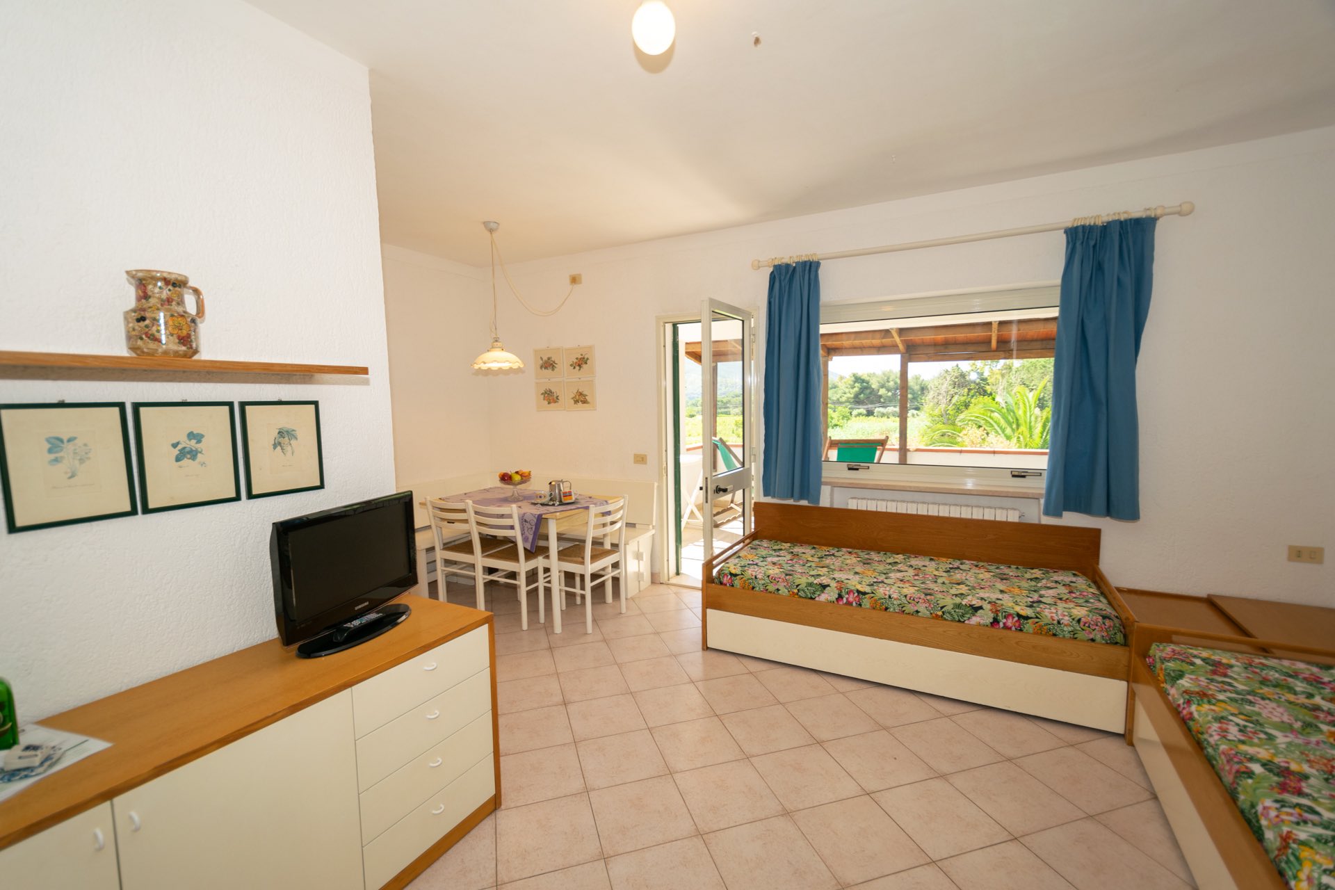 Die Apartments der Villette Giuliana in Lacona sind hell, funktional und im mediterranen Stil eingerichtet. Jede Einheit verfügt über einen separaten Eingang und bietet viel Privatsphäre. Die Wohnbereiche sind gemütlich gestaltet und mit bequemen Sitzmöglichkeiten ausgestattet. Die Küchenzeilen sind komplett eingerichtet und ermöglichen eine unabhängige Zubereitung von Mahlzeiten. Die Schlafzimmer sind schlicht, aber komfortabel, mit ausreichend Stauraum für längere Aufenthalte. Die Badezimmer sind modern und praktisch gehalten. Große Fenster sorgen für eine angenehme Lichtdurchflutung und Blick ins Grüne. Jede Unterkunft verfügt über eine private Terrasse oder Veranda mit Tisch und Stühlen, ideal für entspannte Stunden im Freien. Die Apartments sind von viel Grün umgeben, was für Ruhe und ein natürliches Ambiente sorgt. Klimaanlage oder Ventilatoren bieten zusätzlichen Komfort in den warmen Monaten. Praktische Details wie WLAN und Parkplatzmöglichkeiten runden das Angebot ab. Die Apartments eignen sich sowohl für Paare als auch für Familien, die ein entspanntes und unabhängiges Urlaubserlebnis suchen. Insgesamt bieten sie eine angenehme Kombination aus Komfort, Einfachheit und Nähe zur Natur.