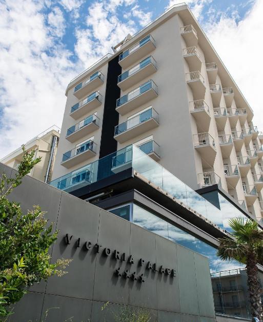 Das Victoria Palace Hotel in Cattolica ist ein elegantes Vier-Sterne-Hotel direkt an der Adria-Küste. Es liegt in zentraler Lage, nur wenige Schritte vom feinen Sandstrand und den wichtigsten Sehenswürdigkeiten entfernt. Das Haus überzeugt mit modernem und raffiniertem Design, das Eleganz und Komfort harmonisch verbindet. Helle Farben, klare Linien und edle Materialien schaffen eine entspannte Atmosphäre. Die Zimmer sind stilvoll eingerichtet, mit Balkon und teilweise herrlichem Meerblick. Besonders exklusiv sind die Penthouse-Suiten im obersten Stockwerk mit Panoramaaussicht auf die Riviera. Der Wellnessbereich „Victoria Spa“ bietet Sauna, Dampfbad, beheizten Innenpool und Schönheitsbehandlungen. Für sportliche Gäste steht das moderne „Victoria Gym“ zur Verfügung. Morgens erwartet die Gäste ein reichhaltiges Frühstück mit Blick auf das Meer. In der eleganten Lounge-Bar kann man den Tag bei einem Aperitif ausklingen lassen. Die zentrale Lage nahe der Piazza Primo Maggio erlaubt es, das lebendige Zentrum und die Promenade bequem zu Fuß zu erreichen. Das Victoria Palace Hotel ist die ideale Wahl für alle, die Erholung, Stil und Meerblick suchen.