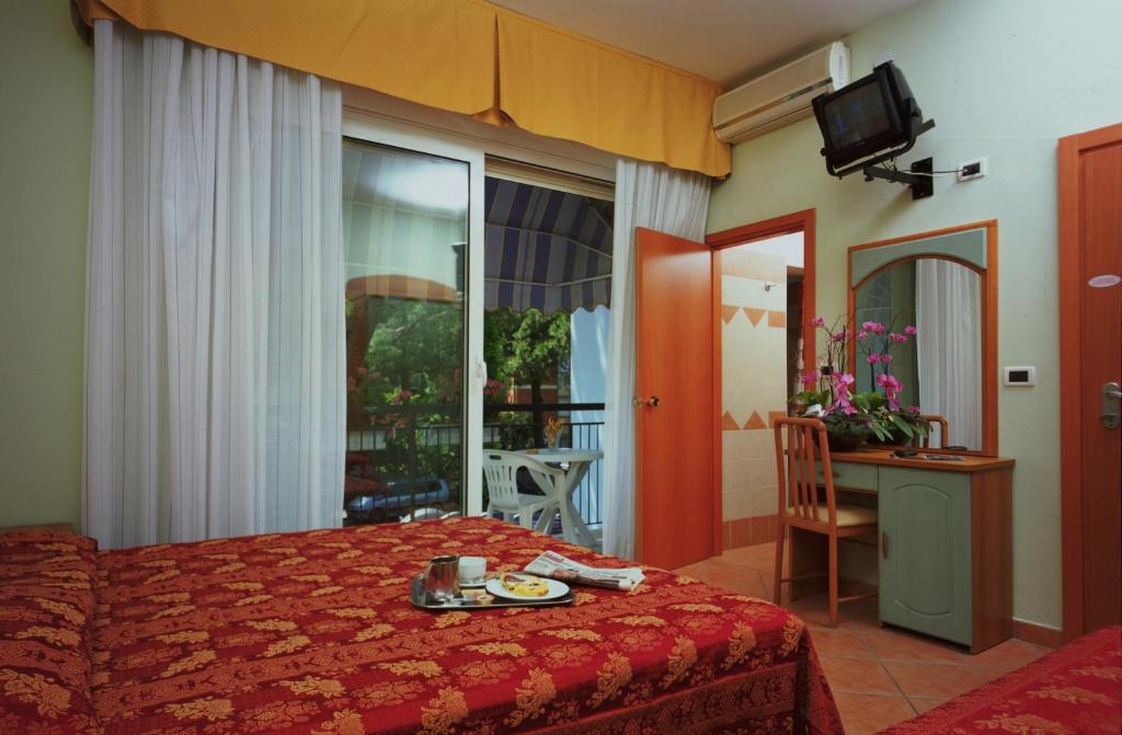 Die Zimmer des Hotel Mondial in Cervia sind modern, hell und komfortabel eingerichtet und bieten eine angenehme Atmosphäre für einen erholsamen Aufenthalt. Viele verfügen über einen eigenen Balkon, der entweder zur Pineta, zum Poolbereich oder in einigen Fällen zum Meer ausgerichtet ist. Alle Zimmer sind mit Klimaanlage ausgestattet und sorgen auch an heißen Sommertagen für ein angenehmes Raumklima. Zur Standardausstattung gehören WLAN, Sat-TV, Safe, Minibar und ein Schreibtisch. Die Betten sind bequem und mit hochwertigen Matratzen versehen, um einen guten Schlaf zu garantieren. Die Badezimmer sind funktional und gepflegt, mit Dusche, Haartrockner und allen nötigen Pflegeprodukten. Die Zimmer werden täglich gründlich gereinigt, um stets höchste Sauberkeit zu gewährleisten. Familien finden geräumige Lösungen mit Zustellbetten oder Kinderbetten vor. Einige Zimmer sind schallisoliert, was für besondere Ruhe sorgt. Die Einrichtung ist in warmen, mediterranen Farben gehalten und vermittelt ein Gefühl von Wohlbefinden. Dank der durchdachten Raumaufteilung wirken die Zimmer luftig und praktisch. Insgesamt bieten die Unterkünfte einen ausgewogenen Mix aus Komfort, Funktionalität und freundlicher Atmosphäre.