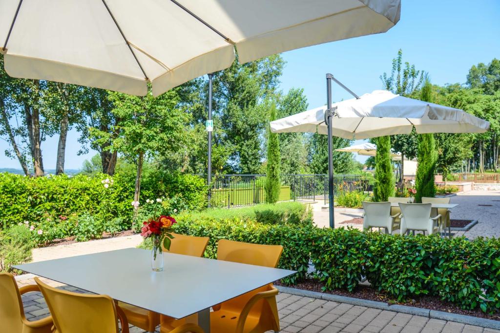 L’Agriturismo B&B Corte Tonolli liegt idyllisch in Valeggio sul Mincio, inmitten der grünen Landschaft Venetiens, und ist ein liebevoll restauriertes Landhaus, das rustikalen Charme mit modernem Komfort verbindet. Die Gäste werden von einer warmen, familiären Atmosphäre empfangen und genießen geschmackvoll eingerichtete Zimmer mit moderner Ausstattung, Klimaanlage und kostenfreiem WLAN. Am Morgen erwartet die Gäste ein reichhaltiges Frühstück mit regionalen Produkten, von denen viele aus eigener landwirtschaftlicher Produktion stammen. Der großzügige Garten lädt zum Entspannen im Grünen ein, während der Swimmingpool an warmen Tagen für erfrischende Abkühlung sorgt. Die Lage ist ideal für Fahrradausflüge entlang des Mincio-Radwegs, und auch der berühmte Parco Giardino Sigurtà ist in wenigen Minuten erreichbar. Der Gardasee liegt nur eine kurze Autofahrt entfernt, ebenso wie die kulturellen Städte Verona und Mantua. Die Gastgeber sind stets hilfsbereit, geben wertvolle Ausflugstipps und vermitteln echte italienische Gastfreundschaft. Die ruhige Umgebung garantiert erholsame Nächte, wodurch sich Corte Tonolli perfekt für Paare, Familien, Naturliebhaber und auch Geschäftsreisende eignet. Das Agriturismo vereint Natur, Komfort und Tradition auf harmonische Weise und macht jeden Aufenthalt zu einem unvergesslichen Erlebnis.