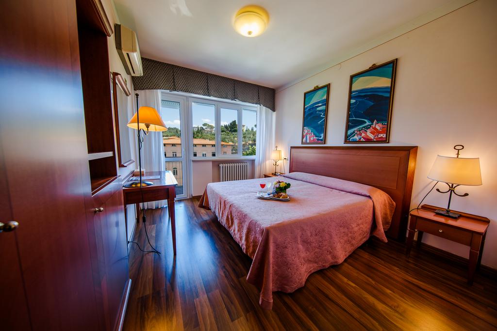 Doppelzimmer: Für Ihren Aufenthalt am Ufer des Lago Trasimeno in Umbrien erwartet Sie das Hotel Lidò mit 53 komfortabel eingerichteten Zimmern: Klimaanlage, Haartrockner, Minibar, Safe, LED-TV mit digitalen Kanälen, kostenfreiem WLAN und Balkon mit Balkon Blick auf die Oase des Trasimeno-Sees und auf das charakteristische umbrische Dorf Passignano sul Trasimeno. Für die sportlicheren Fitnessgeräte in den Zimmern. Und abends herrliche Abendessen auf der herrlichen Terrasse des Ristorante Lidò.