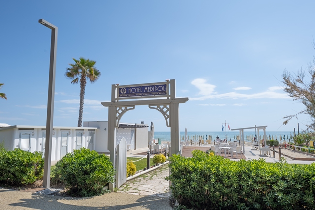Das Hotel Meripol liegt direkt an der Strandpromenade von Alba Adriatica und bietet einen privaten Zugang zum Strand. Es ist ideal für Familien, Paare und Gäste, die einen sonnigen Badeurlaub am Adriatischen Meer genießen möchten. Das Hotel verfügt über einen schönen Außenpool mit Bereichen für Erwachsene und Kinder, einen gepflegten Garten mit Liegestühlen, eine Bar, eine TV-Lounge und ein Panoramarestaurant, in dem regionale und internationale Spezialitäten serviert werden. Die Atmosphäre ist freundlich und familiär. Zu den weiteren Annehmlichkeiten gehören kostenloses WLAN in der Lobby, ein privater Parkplatz, Fahrradverleih, barrierefreie Zugänge sowie ein Strandservice mit Sonnenschirm und Liegen.