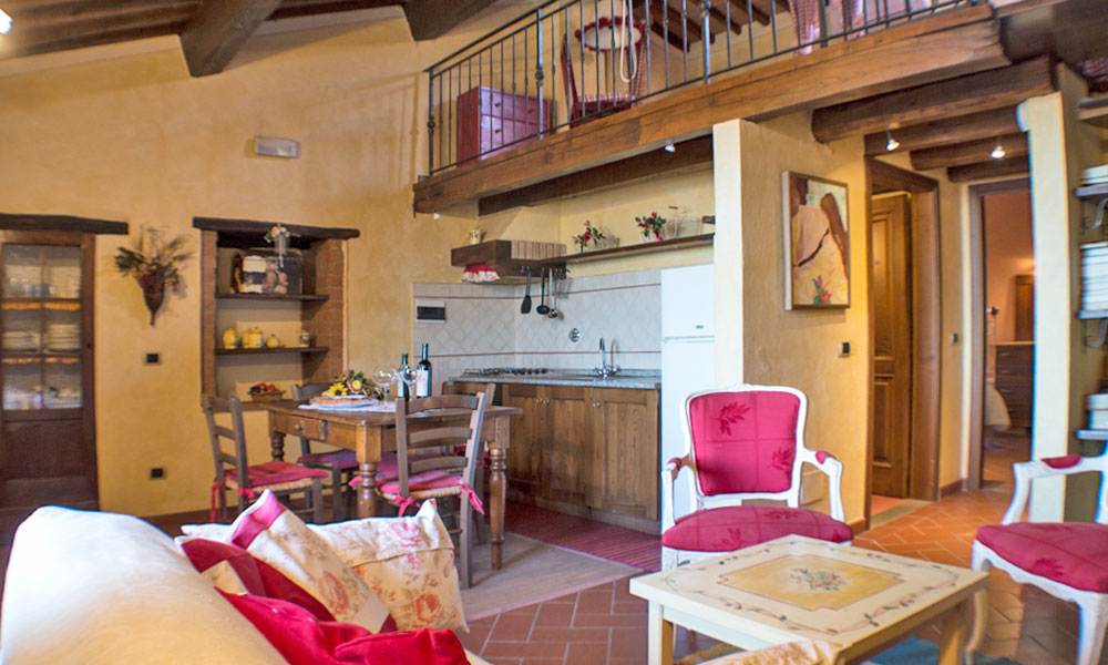 Das Landgut Podere Campiglia findet man in dem Naturschutzgebiet der “Balze del Valdarno”, einer der charakteristischsten Gebiete der Toskana. Das Landgut mit seinem romantischen Steinhaus wird umgeben von weitläufigem Garten, inmitten der Natur und den zauberhaften Hügeln. Ein bezauberndes Panorama über die toskanische Landschaft wartet auf die Gäste. Das toskanische Landhaus wurde mit viel Liebe zum Detail renoviert und besticht durch seinen eleganten Country Chic. Im weitläufigen Garten mit bunten Blumen, Olivenbäumen und alten Terrakotta-Vasen. Am schön angelegten Swimmingpool mit gemütlichem Liegebereich kann man den Blick über die toskanischen Hügel schweifen lassen. In dem umliegenden 6 ha Grundstück kann man Spaziergänge unternehmen oder den Reitstall und die Weinberge besuchen, denn hier wird echter Chiantiwein und Olivenöl hergestellt. Die 4 Ferienwohnungen sind alle im charmanten Landhausstil eingerichtet mit vielen Extras ausgestattet. Jede Wohnung verfügt über eine möblierte Terrasse oder Veranda. W-LAN und Parkplatz können gerne kostenfrei genutzt werden.